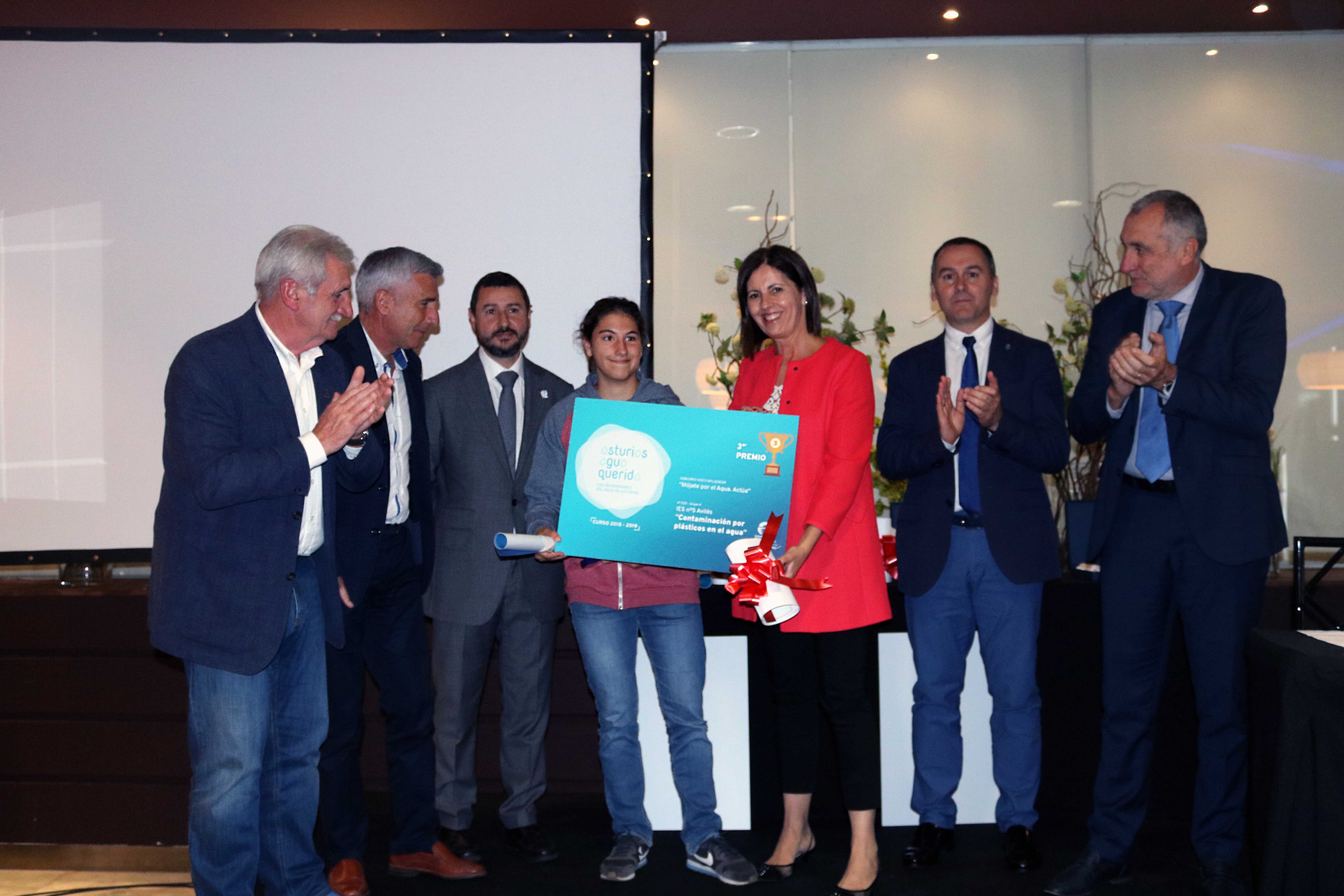 - Primer premio: un cheque por valor de 800 euros otorgado por el Consorcio de Aguas de Asturias para material escolar y recursos tecnológicos para el centro, a canjear entre varios establecimientos de la Asociación de Comerciantes de Asturias, un descenso del Sella en canoa para el grupo y cuatro adultos a determinar por el centro educativo y, un trofeo-placa conmemorativo para el centro educativo.