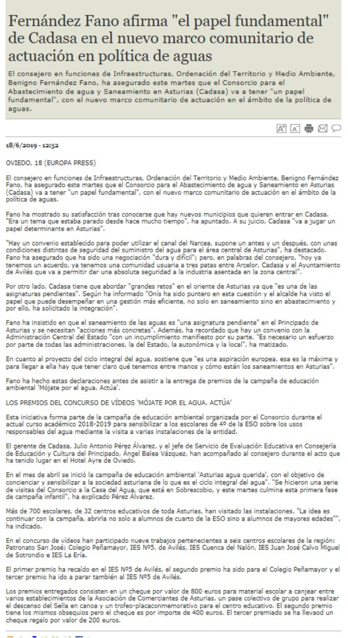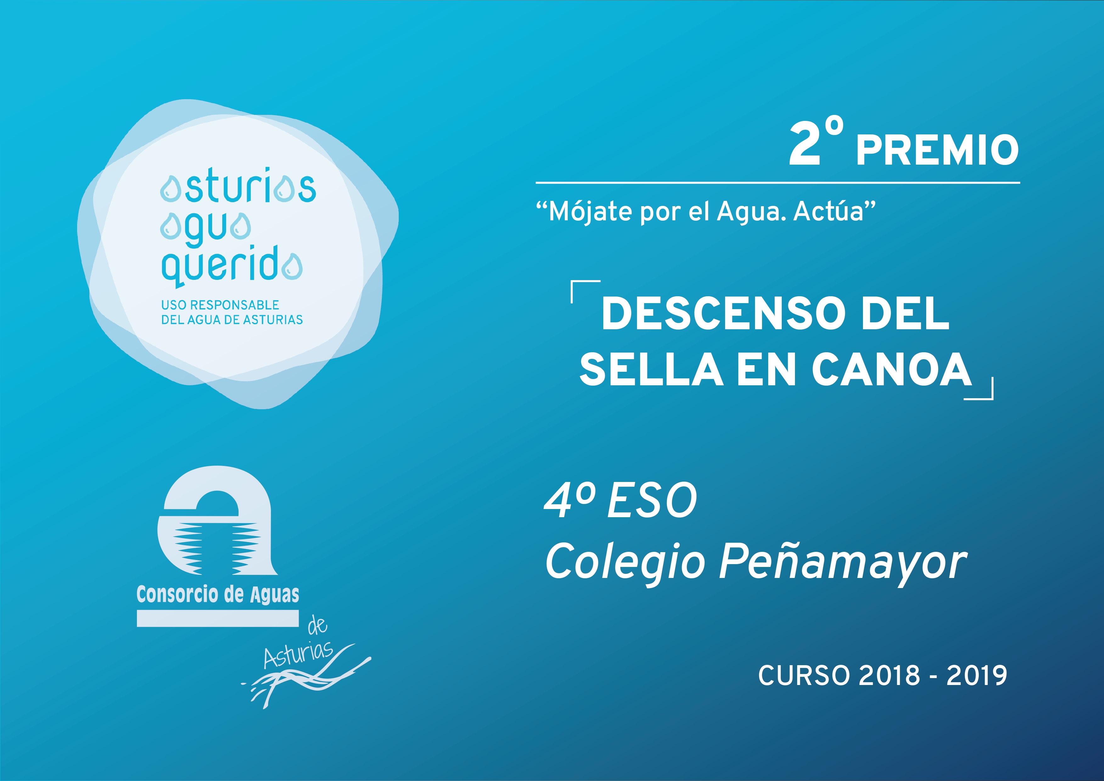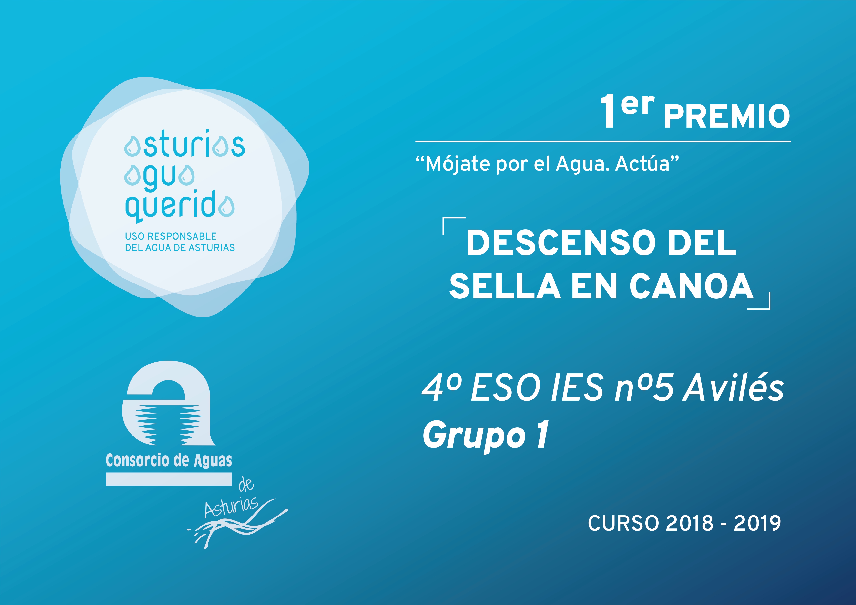 Dentro de las actividades previstas para la campaña de educación ambiental “Asturias Agua Querida” organizada por el Consorcio durante el actual curso académico 2018-19 para sensibilizar a los escolares de 4º de la ESO de los colegios que lo solicitaron sobre el uso responsable del agua, mediante la visita a varias instalaciones de la entidad: la Casa del Agua de Rioseco, la Estación de Tratamiento de Agua Potable (ETAP) de Rioseco y la Estación Regeneradora de Aguas Residuales (ERAR) de Baiña, en la cuenca del Caudal, se organizó un concurso de elaboración de “vídeos influencer”, bajo el lema «Mójate por el Agua: Actúa» en el que se premió a los tres mejores bajo los parámetros de originalidad, mensaje, narrativa, sonido y técnica, ponderando mayormente los tres primeros.